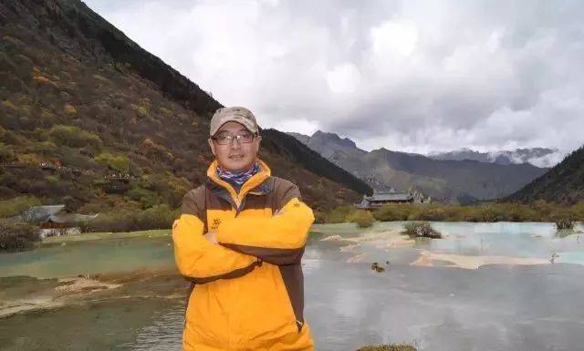 一个青岛中年男人正在圣城亚丁晒着太阳