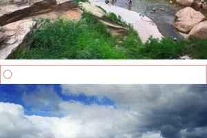 天马四方像天台,山顶倒比山邦矮,十万巨石天外来,陕北山丹丹遍地开。岛上有天然形成的瀑布达数百条之多,尤在夏季,水量充沛,“飞流直下三千尺,疑是银河落九天”的壮丽景观,使游客朋友们无一不感慨万千。