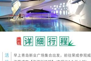 海洋科技馆:荣成市海洋食品博览中心,是目前全国首家集旅游资源展示、海洋食品产业推介、海洋科普体验展览馆,内部不仅有5D的时光海洋穿梭机,有各种动感的光电单、双人互动游戏机,还有海洋主题的球幕电影等等。