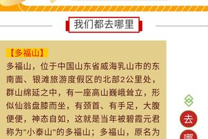 “海上仙山,天赐福地,神韵多福,养生净土”的【多福山景区】,景区坐拥乳山市滨海新区最高峰、海拔395.95米的“小泰山”——多福山,距离“天下第一滩”银滩仅2000米,自古以“古刹”、“庙会”、“圣水”、“奇石”而闻名,素有“小泰山”的美誉。