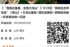 【“西有吐鲁番,东有大泽山”】9/19日“醉美生态养生地”【茶山】+大泽山葡萄+网红摇摆桥+猕猴桃采摘+农家宴休闲一日游 [复制链接]