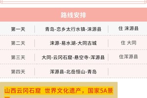 【VIP头等舱•北岳•悬空寺•4日】9/7~10日 品满汉全席•游大同古城•云冈石窟•北岳恒山•悬空寺•涞源易水湖 [复制链接]