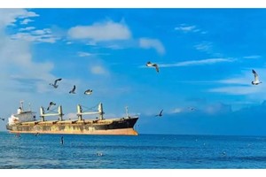 布鲁维斯号是巴拿马籍空载散货船,2022年9月19日,受台风“南玛都”外围环流的影响,在小五队瑞泽·海驿站附近海域搁浅。就像是一个迷路的孩童,无论大海如何波涛汹涌,它将始终留在原地。