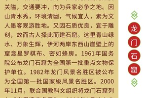 世界上有两座城市拥有美丽的守护女神,一座在大陆的西岸,她叫雅典(雅典娜),一座在世界的东方,她叫洛阳(洛神)。龙门石窟是中国石刻艺术宝库之一,现为世界文化遗产、全国重点文物保护单位、国家AAAAA级旅游景区,龙门石窟与莫高窟、云冈石窟、麦积山石窟并称中国四大石窟。