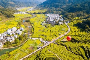 一园春色:婺源江岭,那里漫山遍野的油菜花呈梯田状,从山顶铺散到黑瓦白墙的徽派民居里,一直到山谷的最远端。