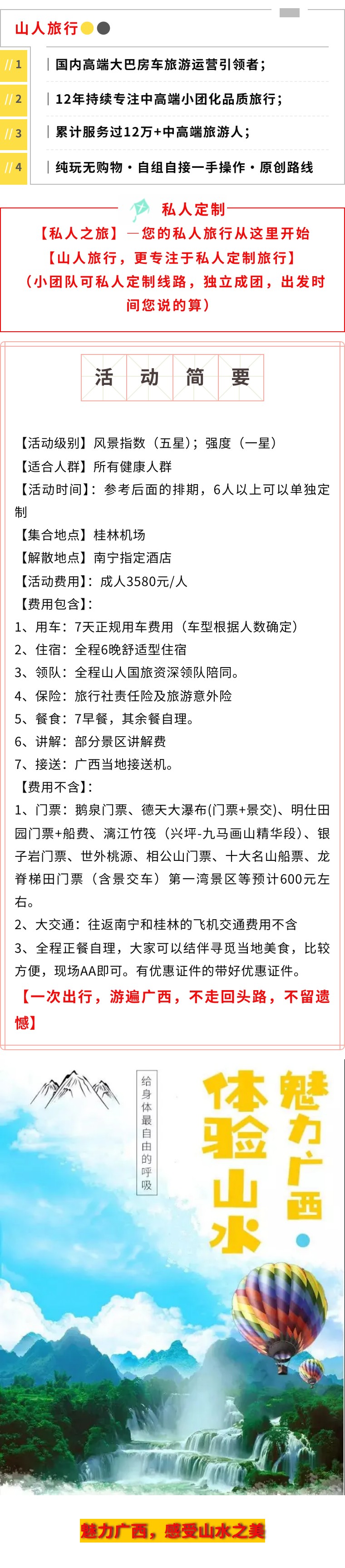 【高品小团•魅力广西全景7日•桂林•巴马】12月多期德天跨国瀑布•靖西鹅泉•巴马长寿村•漓江漂流•遇龙河•相公山 [复制链接]