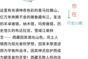 拉萨这片高贵安详,天人合一的土地,湛蓝的天空空灵高远,平静俯视着它虔诚的子民。从皑皑冰雪和冥冥波光的暗示中,从山湖之间的宇宙传出的喃喃诵经声中,我们去领悟山神水灵和哲人智者的启迪-西藏