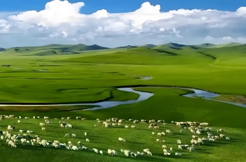 莺飞草长的草原上空是蓝色的云,云飘来飘去,很悠闲,莺飞草长的草原和悠闲的云搭配在一起是无比的合适,人站在草原上看到这种景象会心旷神怡,美得不能在美了。跟上我们的脚步一起踏进绿色的海洋,在这里快马扬鞭,策马奔腾......