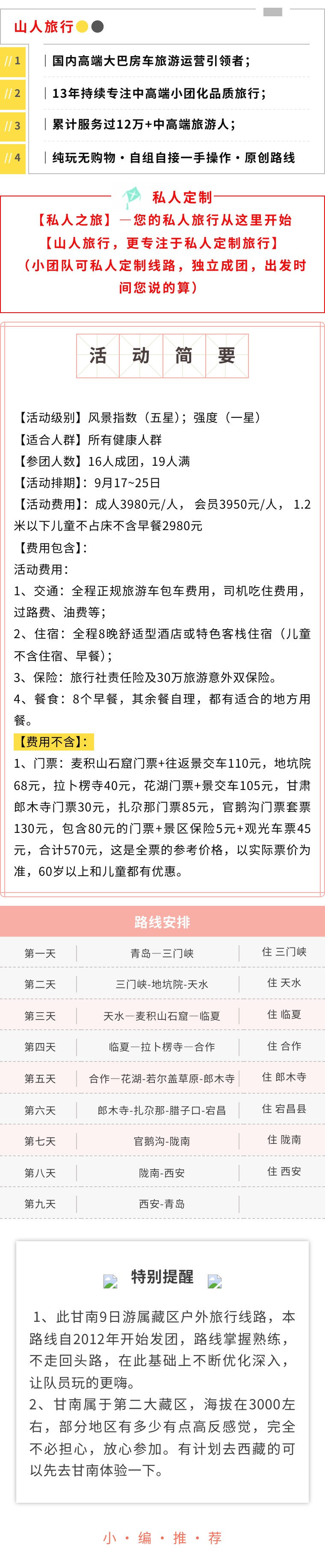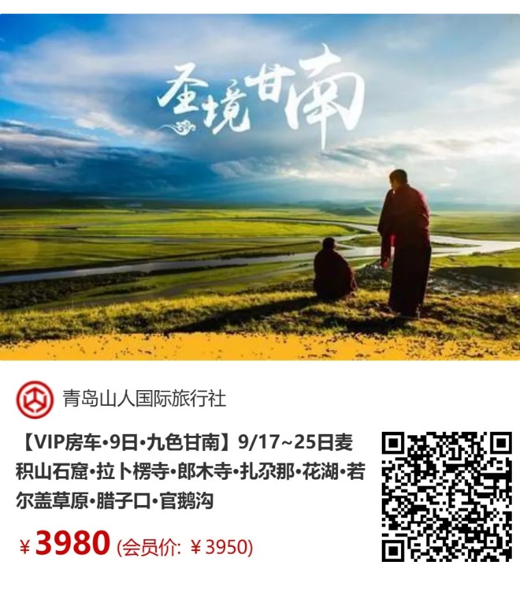 【VIP房车•9日•九色甘南】第七期9/17~25麦积山石窟•拉卜楞寺•郎木寺•扎尕那•花湖•若尔盖草原•腊子口•官鹅沟 [复制链接]