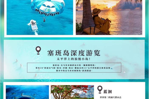 开飞机俯瞰塞班全岛/高空跳伞/出远海钓鱼/深潜摸珊瑚追海龟/真枪实弹射击等。