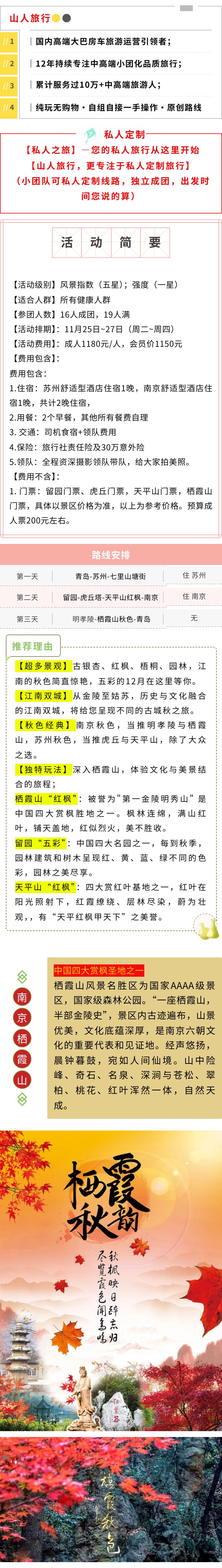 【VIP房车19人•3日•江南秋•金陵+姑苏】第一期11/25~27南京栖霞山红枫•苏州天平山•园林秋韵•虎丘•留园 [复制链接]