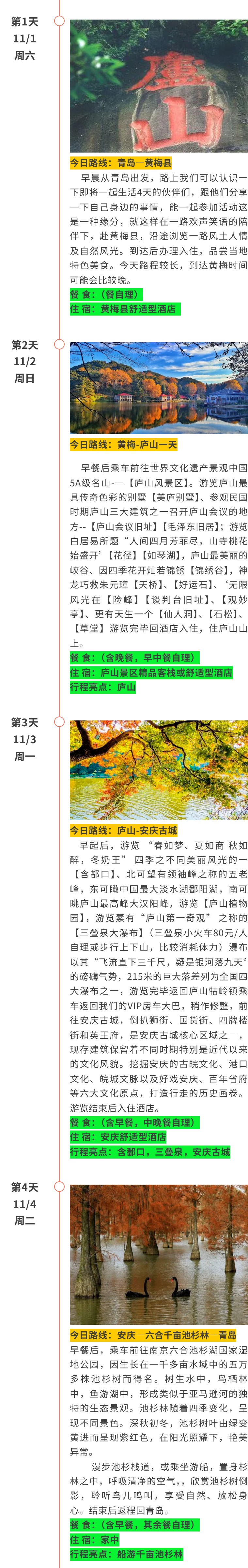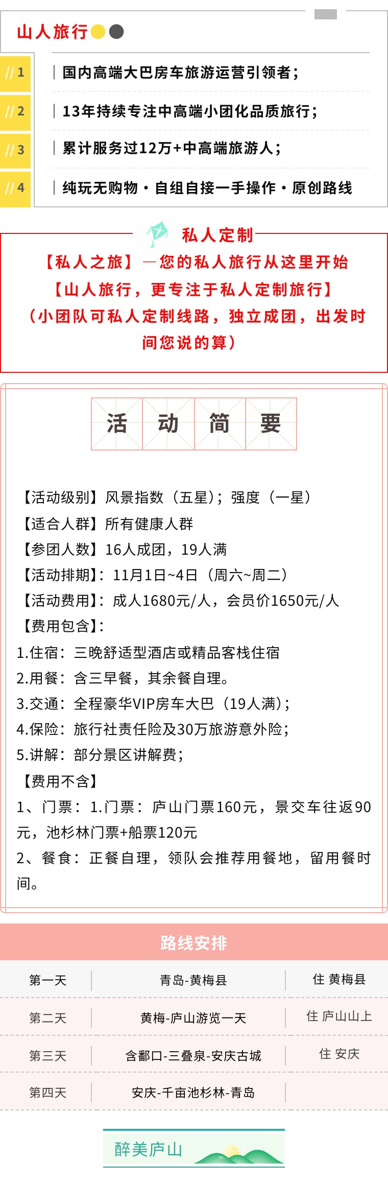 【VIP房车19人•秋之庐山•4日】11/1~4日三山之庐山•美墅•如琴湖•牯岭街•含鄱口•三叠泉•安庆古城•船游千亩池 [复制链接]