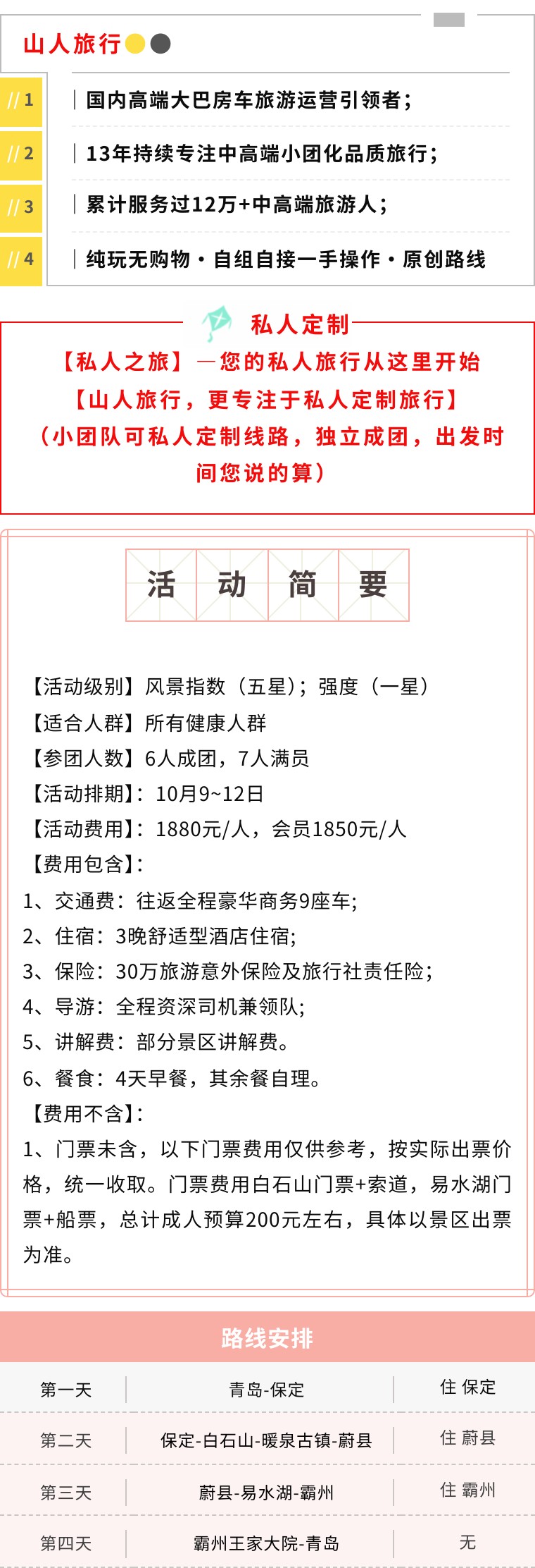 【8人团•白石山秋摄•4日】10/9~12日“北方张家界”白石山红桦•1900米玻璃栈道•千年古镇暖泉•“小桂林”易水湖 [复制链接]