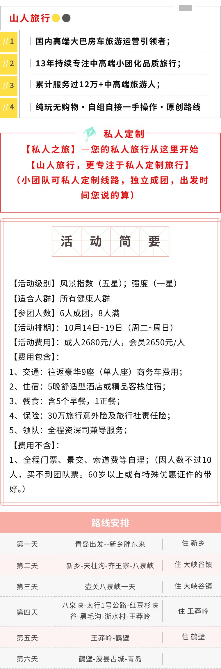【8人团•6日•太行秋色•上门接送】10月14~19日齐王寨•太行喀纳斯•太行1号公路•王莽岭•黑毛沟•浙水村•八泉峡 [复制链接]