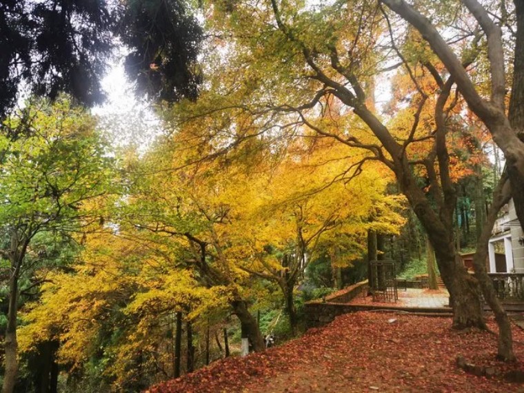 秋天最适合看枫叶,莫干山红叶是秋日必赏景色。到秋天,莫干山上竹叶有的依旧碧绿,有的变为金黄,本已色彩斑斓。夹杂的红叶在这素色的背景中更显得分外夺目。穿越林间小道,踩在厚厚的落叶上,嚓嚓作响。
