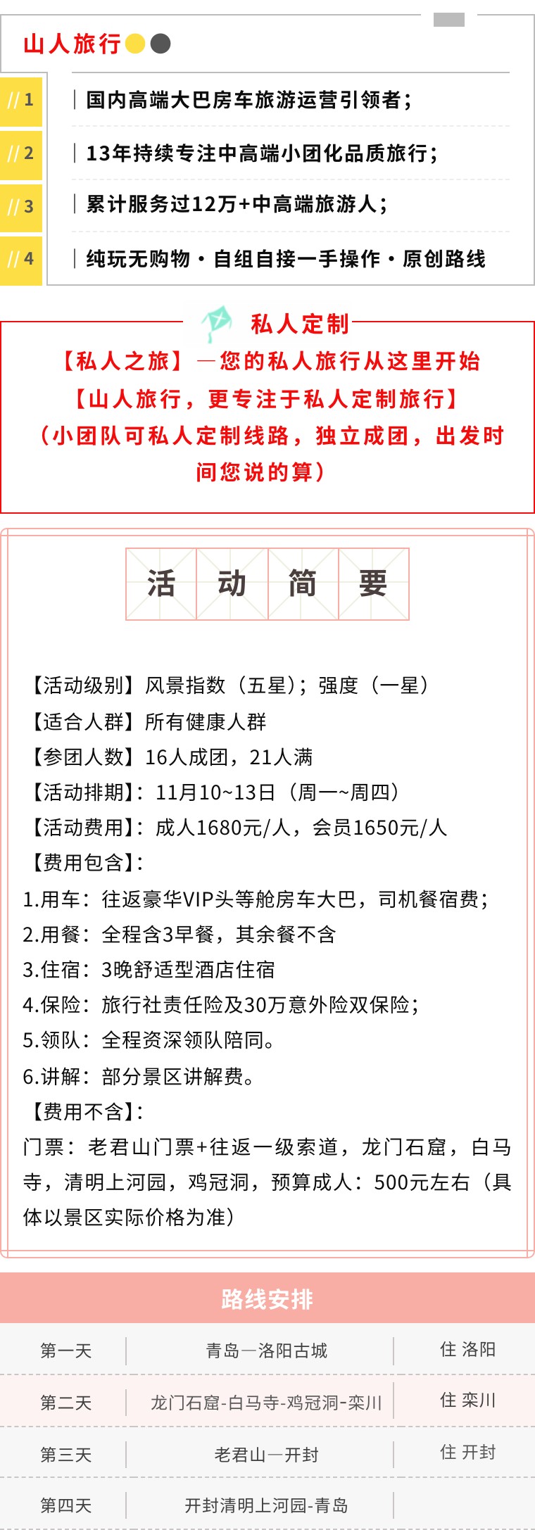 【VIP头等舱21人•4日•秋满老君山】11/10~13游老君山•洛阳古城•龙门石窟•白马寺•清明上河园 [复制链接]