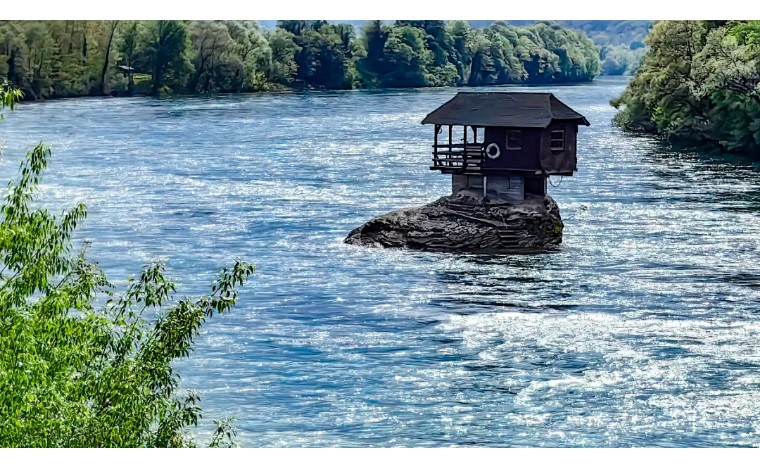 河中的小屋,最早是被美国国家地理杂志曝光而闻名的。这所建在塞尔维亚-波黑界河德里纳河中的一块礁石上,因此得名被德里纳河屋,被国家地理称为“最孤独的小屋”。