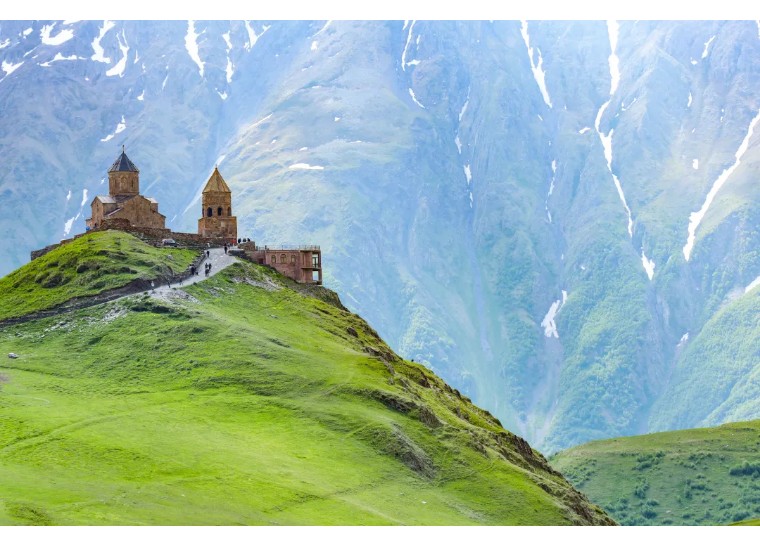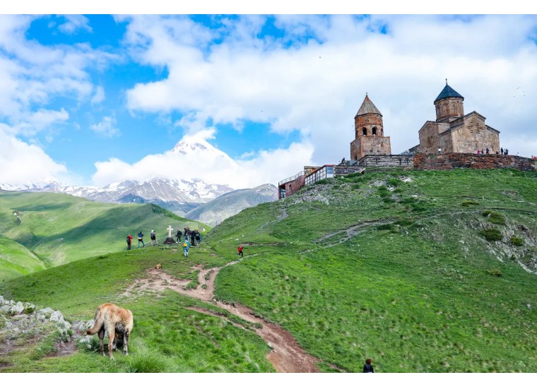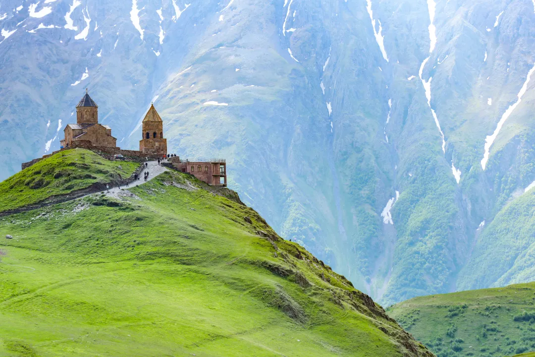 “火之国度”与“离天堂最近”的信仰对话:在阿塞拜疆感受对火的千年崇拜(拜火庙、火焰塔),在格鲁吉亚攀登至海拔2170米的卡兹别克圣三一教堂,俯瞰雪山,体验“离天堂最近的教堂”的静谧与神圣。