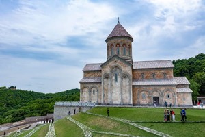 前往【巴格拉特大教堂】巴格拉特大教堂又名“圣母升天之堂”,始建于10世纪末,完成于11世纪初。教堂建在乌克枚里奥纳山上,宏伟壮观,曾为当时大主教主持弥撒的主教堂。教堂中央的圆顶由4根高大的柱子和相互重叠的拱门支撑,教堂内墙镶贴彩色马赛克,外墙镶嵌着花草鸟兽图案的浮雕。教堂为十字形圆顶建筑物,用富丽的石刻装饰,教堂内满是壁画,于1994年被列入《世界遗产目录》。