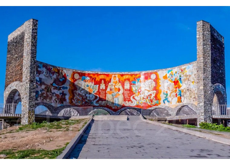 格俄友谊纪念碑:位于十字路口山巅,巨型弧形浮雕纪念两国“友谊”,现成观景台俯瞰峡谷。