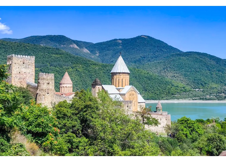 Ananuri城堡:阿拉扎尼河畔的中世纪要塞群,教堂尖顶倒映湖中,沧桑又诗意。