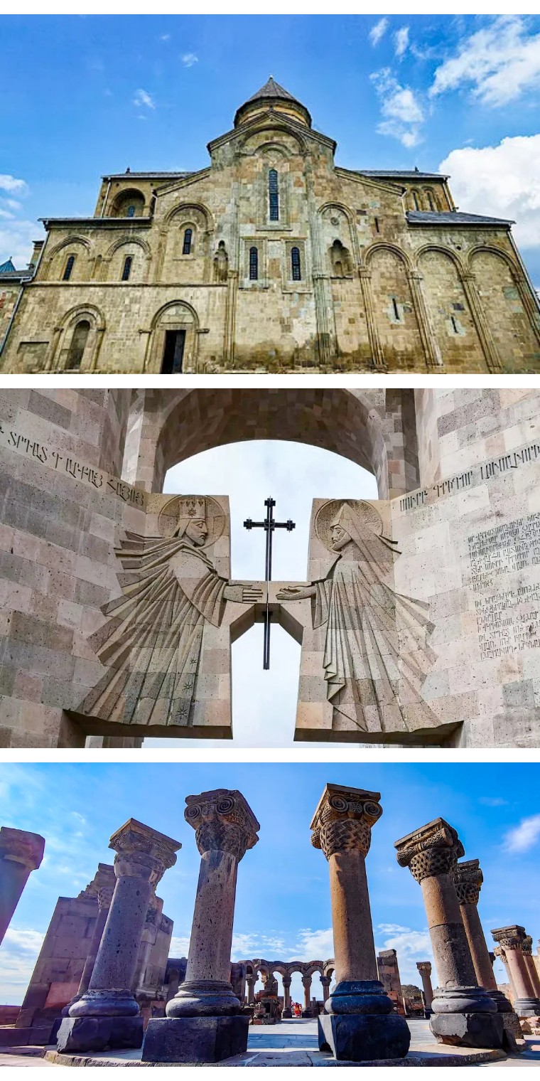 古今交融:从阿塞拜疆的希尔沙王宫到格鲁吉亚的圣三一大教堂,再到亚美尼亚的加尔尼神庙,不同风格的建筑展示了高加索地区深厚的历史积淀与多元文化融合。