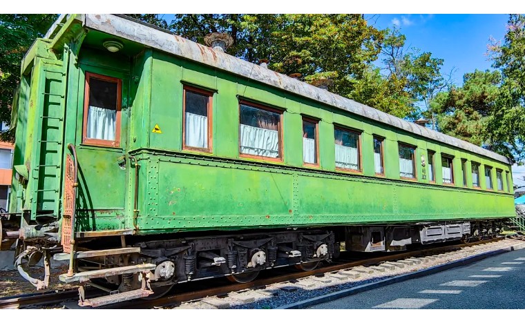 【斯大林专列】斯大林博物馆的庭院中陈列着斯大林专列的绿色车厢,有防弹玻璃和装甲层。当年斯大林就是坐着它去参加德黑兰会议、雅尔塔会议和波兹坦会议的。斯大林逝世后,这辆专列停在俄罗斯的罗斯托夫火车站,1985年二战胜利40周年,转移到了哥里斯大林博物馆。