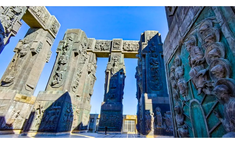 格鲁吉亚编年钟:巨型石柱群矗立山顶,铭刻国家3000年史诗,气势恢宏却鲜为人知。