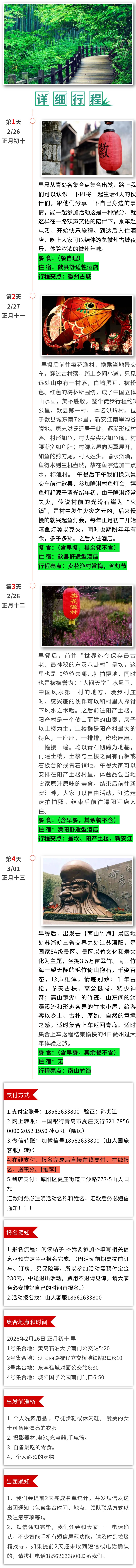 【坐卧车35人•4日•徽州过大年•赏梅•嬉鱼灯】第二期初十~十三歙县秘境•卖花渔村•新安江畔•土楼•呈坎•阳产•渔灯节 [复制链接]