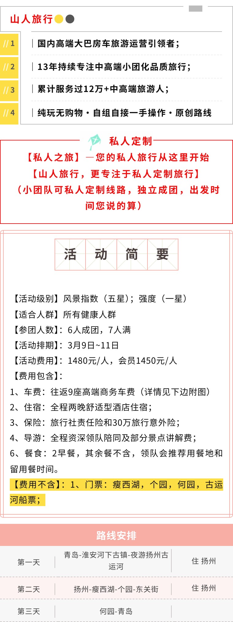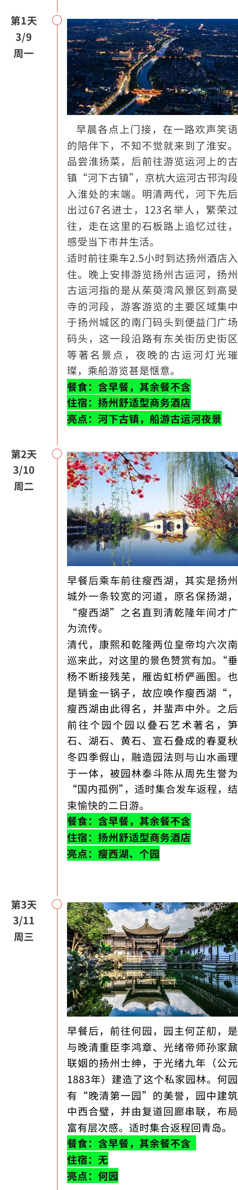 【7人团•3日•深度游扬州•上门接送】3月9~11日扬州瘦西湖•个园•何园•淮安河下古镇•船游古运河夜景•东关街 [复制链接]