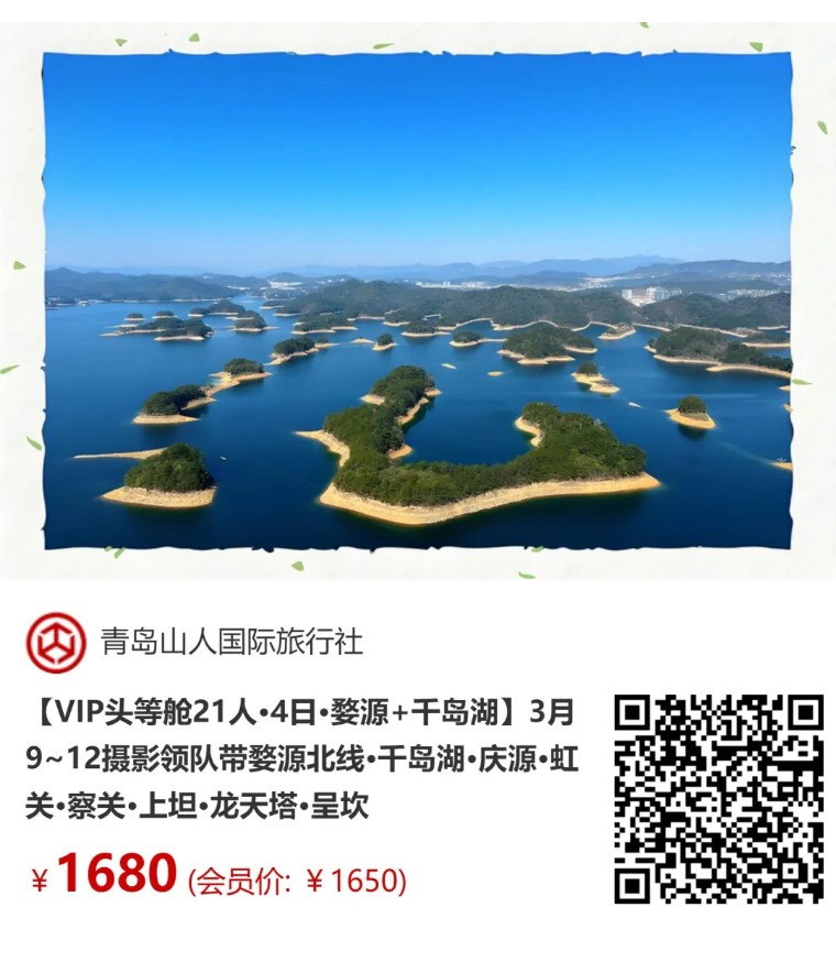 【VIP头等舱21人•4日•婺源+千岛湖】3月9~12摄影领队带婺源北线•千岛湖•庆源•虹关•察关•上坦•龙天塔•呈坎 [复制链接]