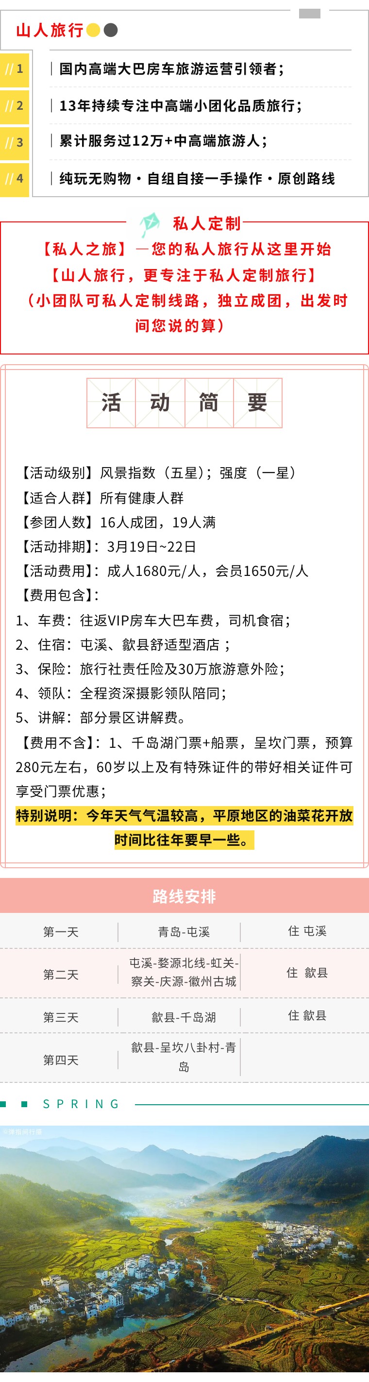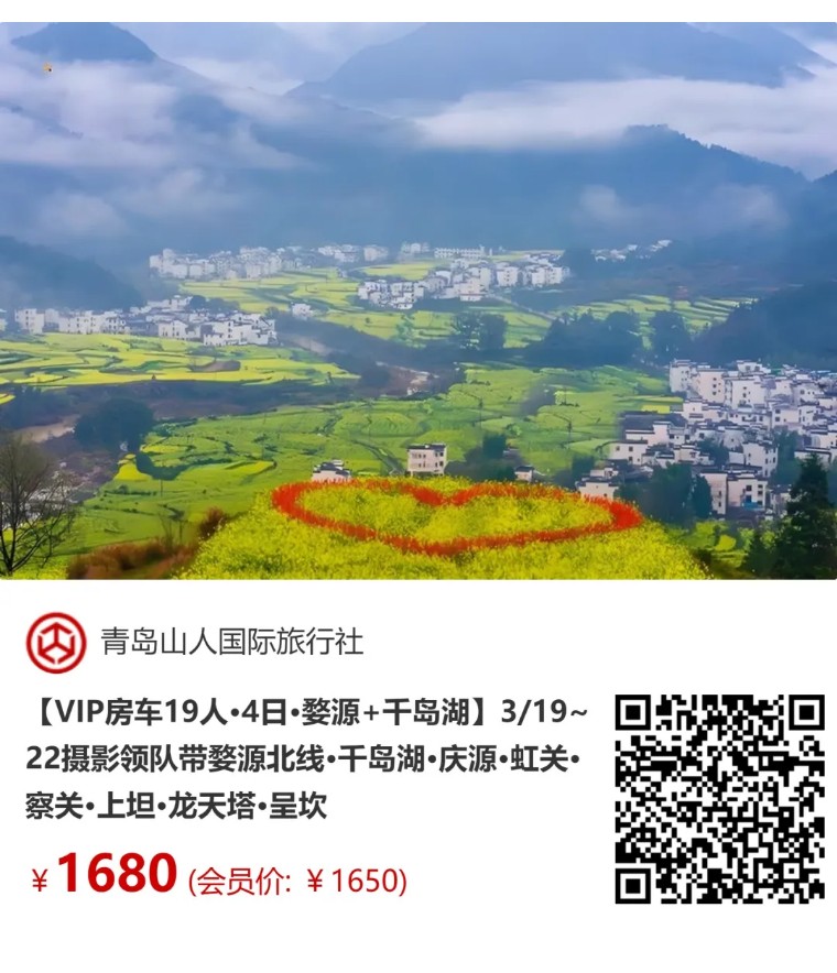 【VIP房车19人•4日•婺源+千岛湖】3/19~22婺源北线•千岛湖•庆源•虹关•察关•上坦•凤山龙天塔•呈坎八卦村 [复制链接]