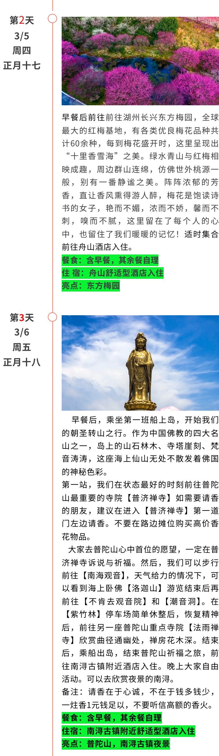【VIP头等舱21人•早春祈福•4日】3/4~7日深度转山•普陀山•普济寺祈福•南浔古镇•东方梅园•东庐山观音寺 [复制链接]