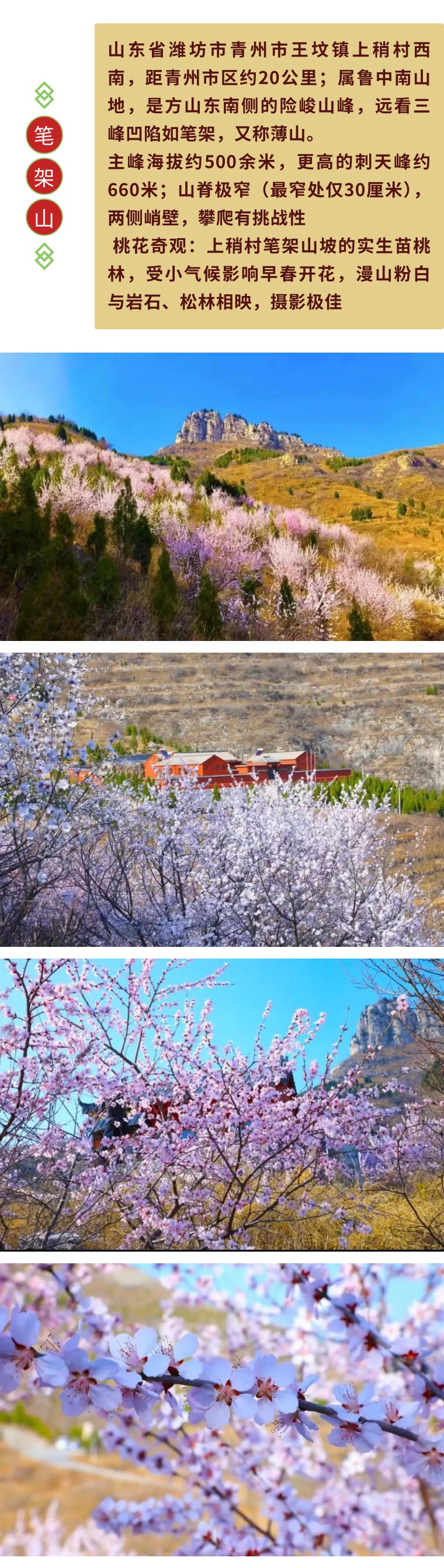 【坐卧车35人•潍坊上稍踏春赏漫山桃花•1日•138元】3月8日潍坊上稍赏桃花•笔架山休闲一日游 •拍照打卡 [复制链接]