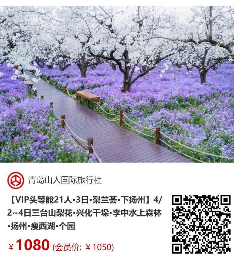 【VIP头等舱21人•3日•梨兰荟•下扬州】4/2~4日三台山梨花•兴化千垛•李中水上森林•扬州•瘦西湖•个园 [复制链接]