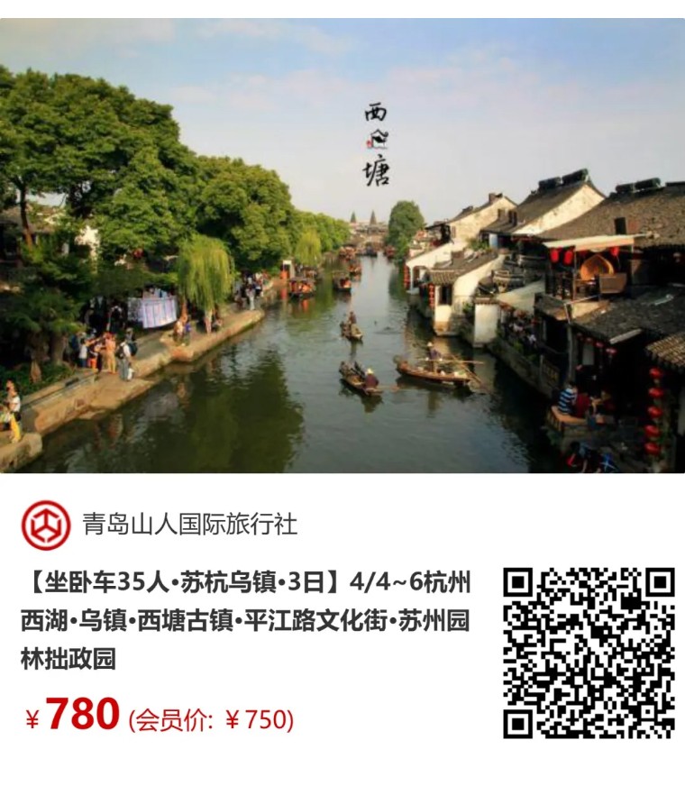 【坐卧车35人•苏杭乌镇•3日】4/4~6杭州西湖•乌镇•西塘古镇•平江路文化街•苏州园林拙政园 [复制链接]