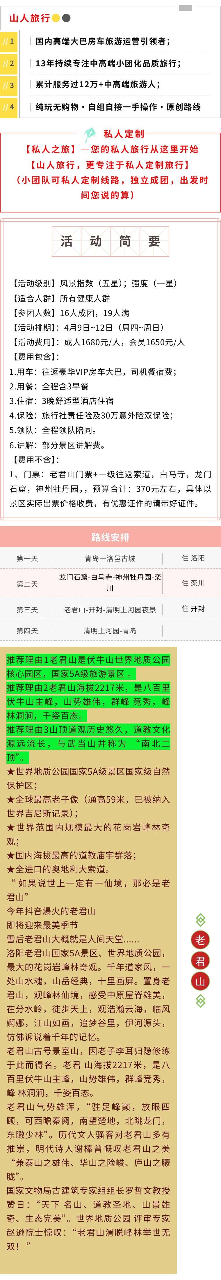 【VIP房车19人•老君山•4日】4/9~12游老君山•洛邑古城•中华牡丹园•龙门石窟•白马寺•“白+黑”玩转清明上河园 [复制链接]