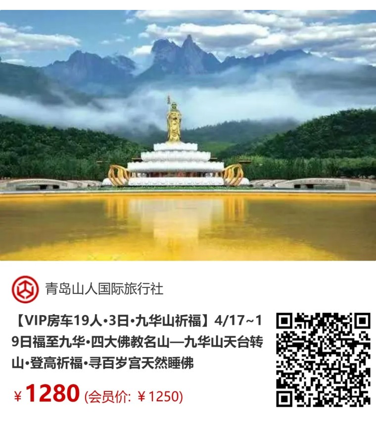 【VIP房车19人•3日•九华山祈福】4/17~19日福至九华•四大佛教名山—九华山天台转山•登高祈福•寻百岁宫天然睡佛 [复制链接]