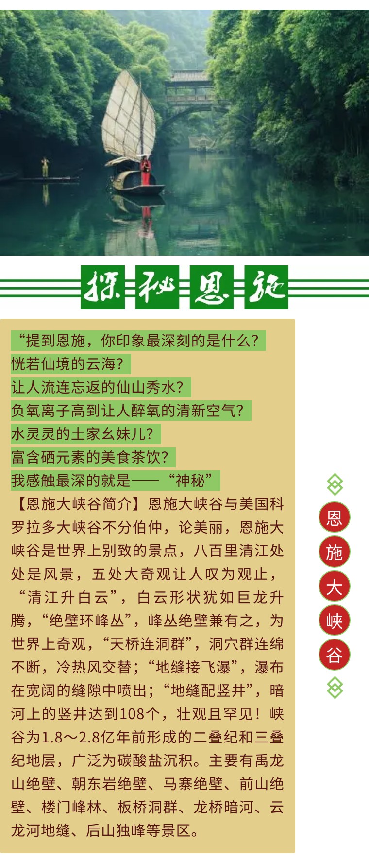 【VIP头等舱21人•三峡恩施•8日】4/13~20日恩施大峡谷•梭布垭石林•三峡大坝•三峡人家•屏山峡谷•狮子关 [复制链接]