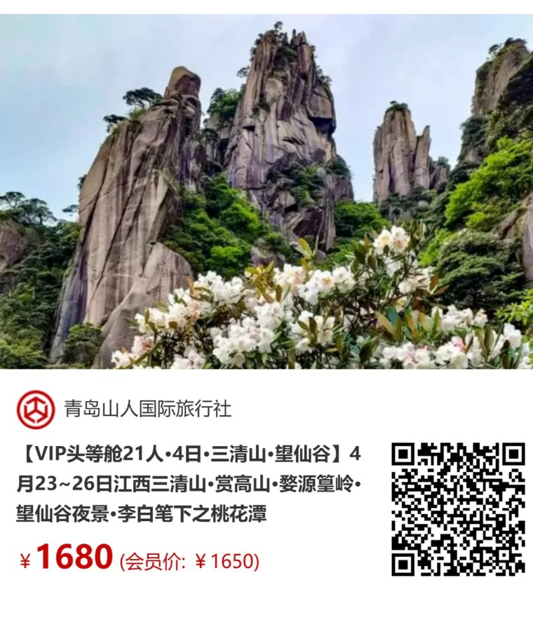 【VIP头等舱21人•4日•三清山•望仙谷】4月23~26日江西三清山•赏高山•婺源篁岭•望仙谷夜景•李白笔下之桃花潭 [复制链接]