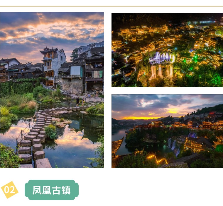 【凤凰古城】湘西名珠、浪漫的艳遇之都,让人流连忘返的夜景,被誉为“中国最美丽的小城”之一。