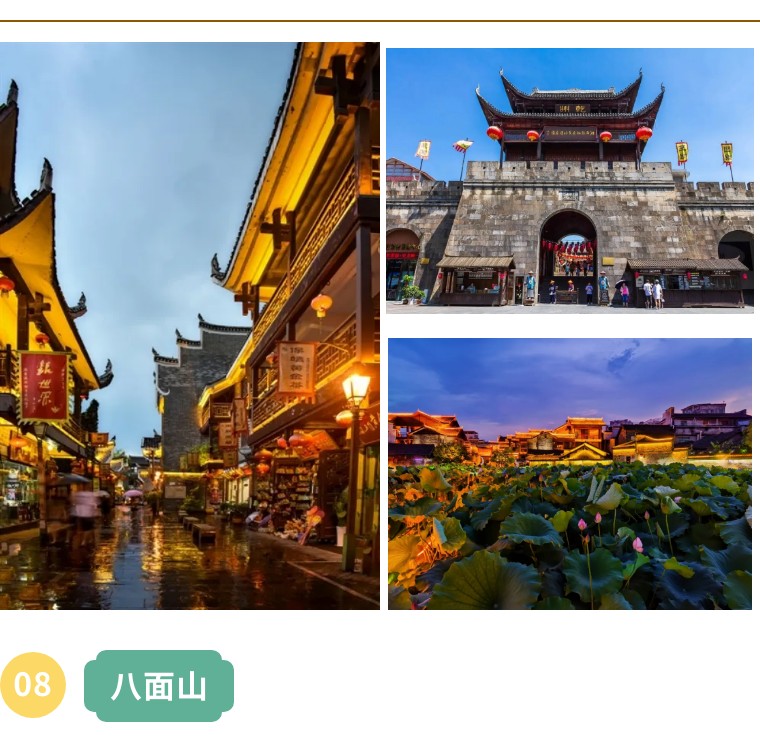 八面山位于龙山县南部,西面与重庆市酉阳县、秀山县接壤。从里耶远看八面山像一个睡美人一样凌架于崇山峻岭之中,南北长约50公里,宽10余公里,窄的地区仅仅3公里。山界上地势平坦,为草原地貌,呈小丘陵状,总面积51.4平方公里,平均海拔1200余米。 还未被过度开发,看星空云海,日出日落非常美。