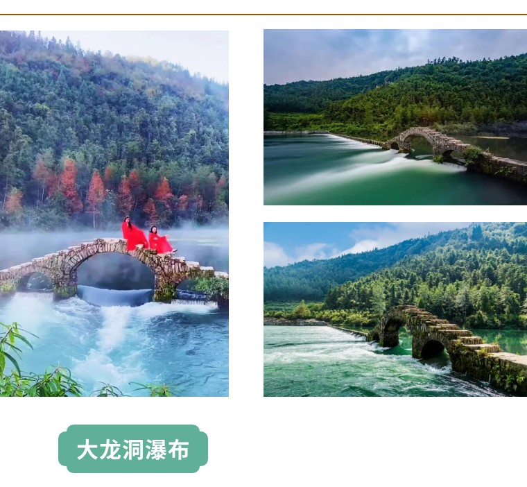 7时早餐后,车赴游览【大龙洞】风景区,天下第一洞瀑,瀑布落差距208米,大宽度88米,大流量398立方米/秒,堪称天下第一。