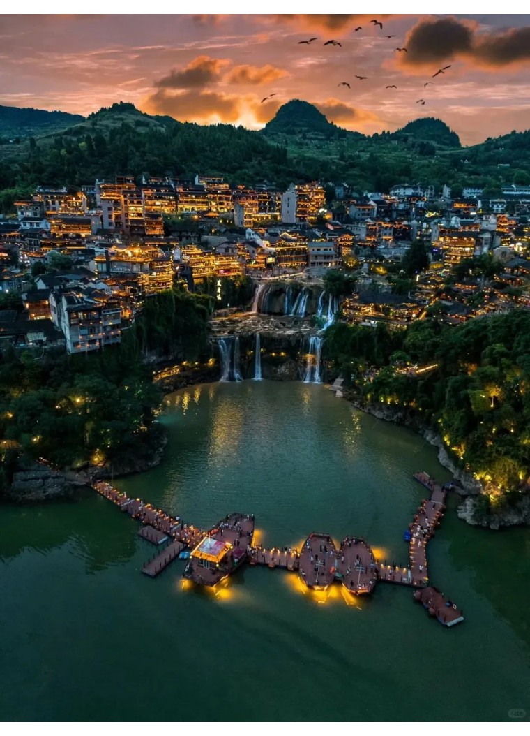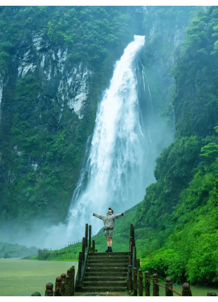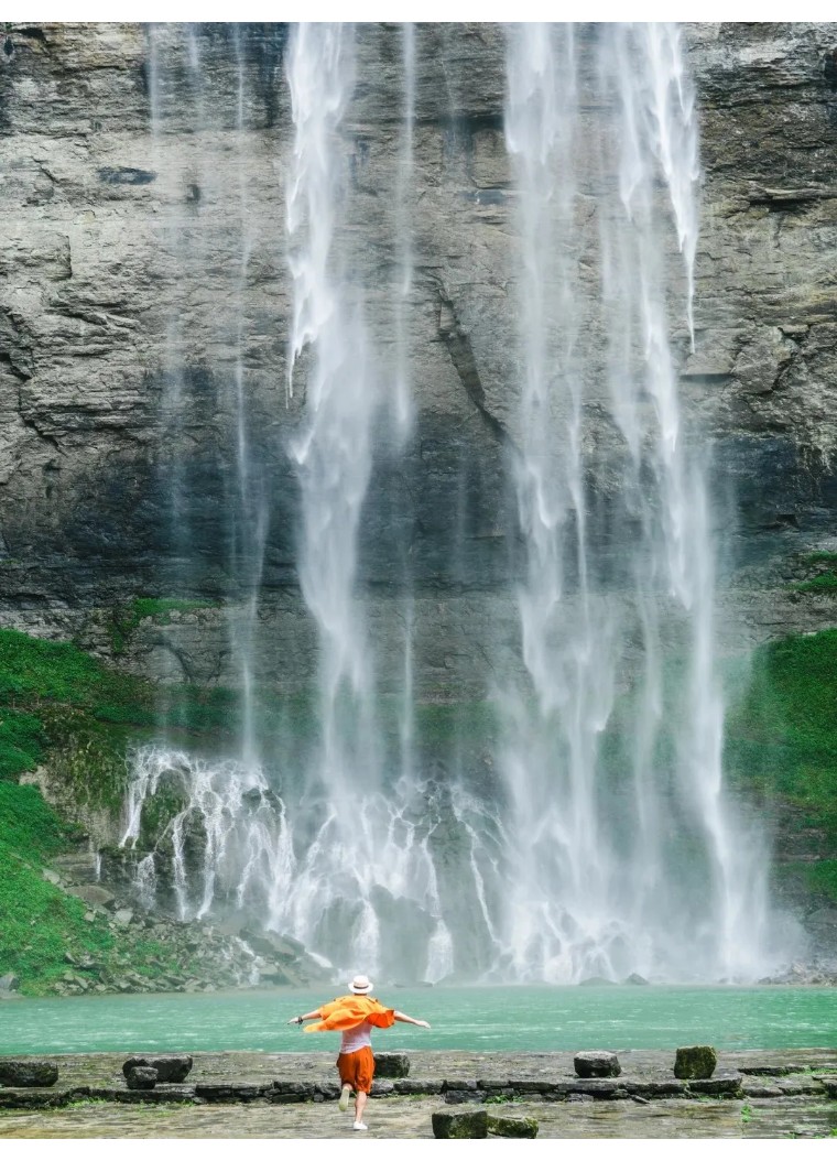 来触摸挂在瀑布上的千年古镇,