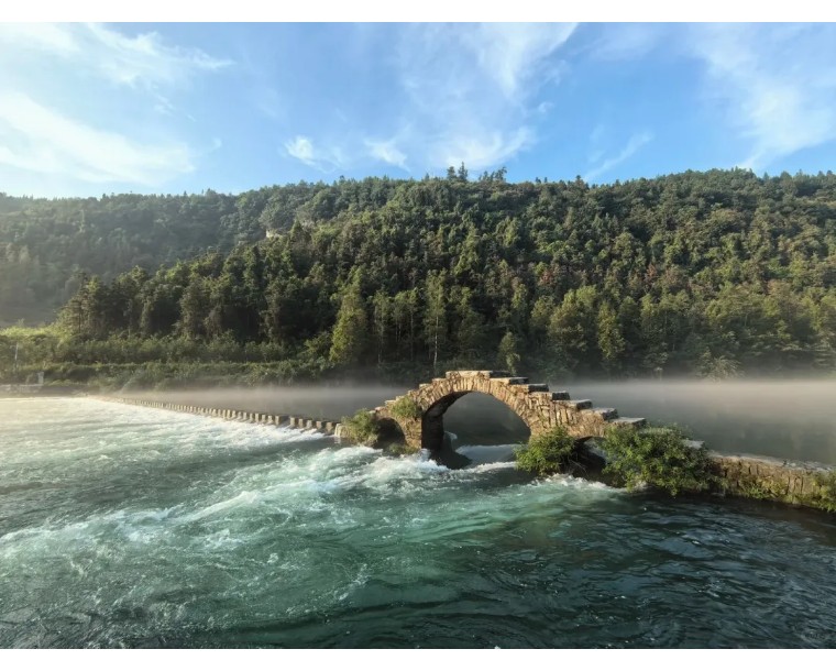 长潭岗网红桥下碧水如翡,