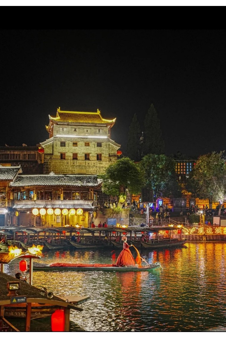 沈从文笔下的静谧边城,《桃花源记》中奇妙的乌托邦,尤其是夜幕降临,沱江两岸灯光熠熠生辉倒映在水中,如同一幅美丽的画卷。漫步江边,或者泛舟江上,彷佛临近心中的诗和远方。