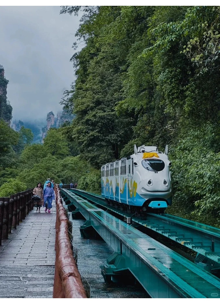 之后乘坐天子山索道下山,再换乘环保车至十里画廊,可购买单程小火车(费用自理)游览十里画廊。