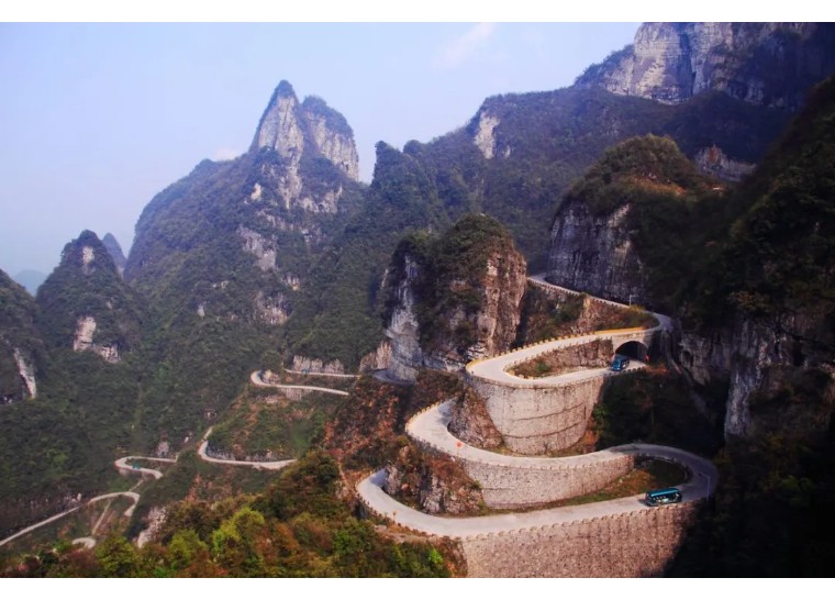 通天大道:被称为通天大道的盘山公路共计99弯,似玉带环绕,弯弯紧连,层层叠起,依山籍壁,直冲云霄,“天下第一公路奇观”横空出世,从索道上观看公路,有如蜘蛛网一般密集的公路,垂直高差达千米左右。